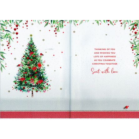 Inside reads: Thinking Of You And Wishing You Lots Of Happiness As You Celebrate Christmas Together Sent With Love