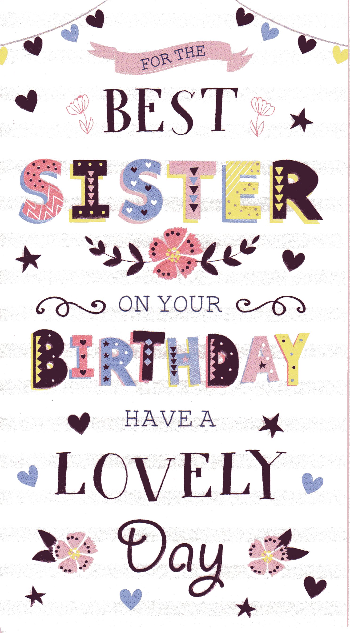 On the front the card reads: For The Best Sister On Your Birthday Have A Lovely Day.