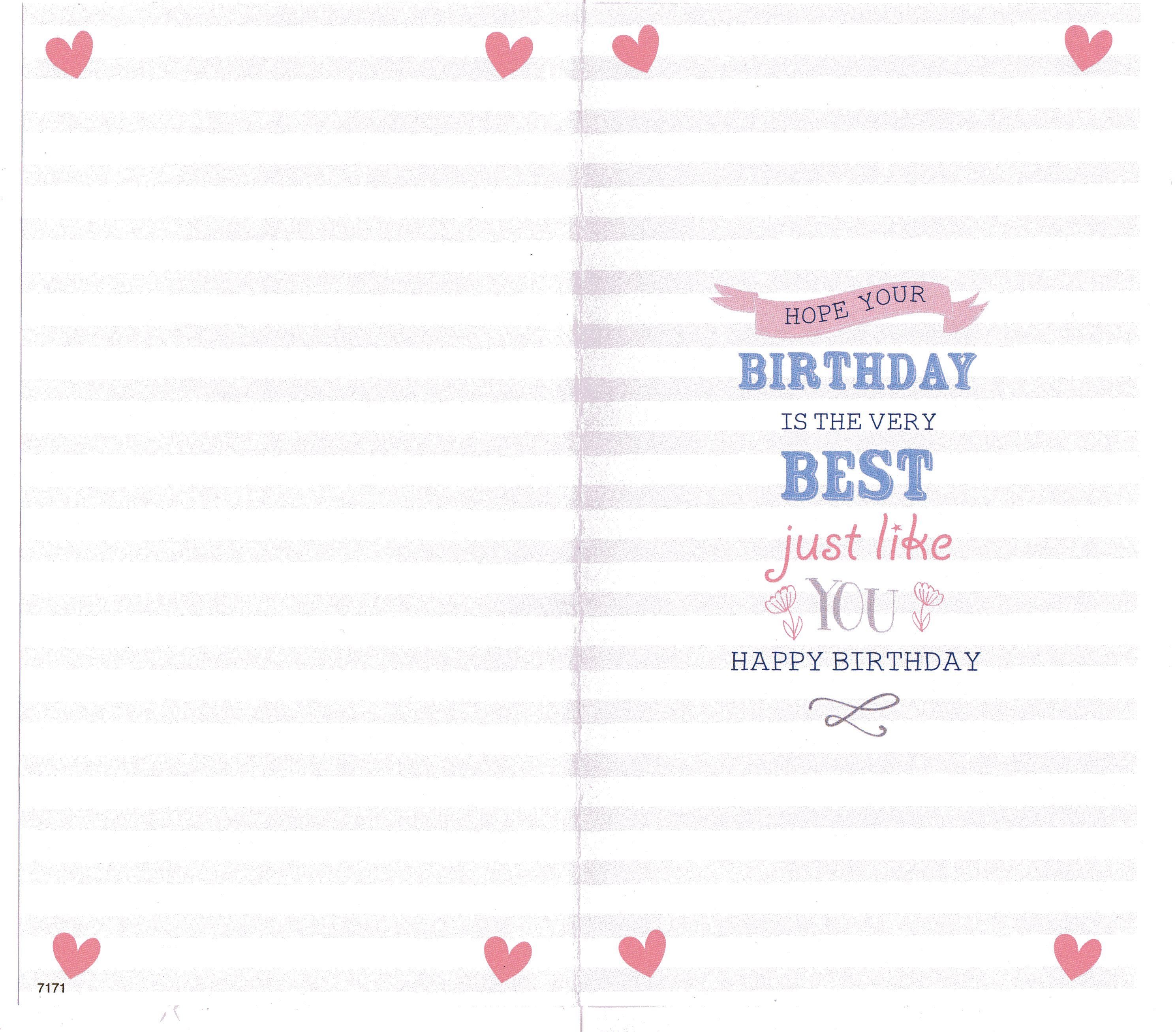 Inside reads: Hope you Birthday is the very Best just like you Happy Birthday.