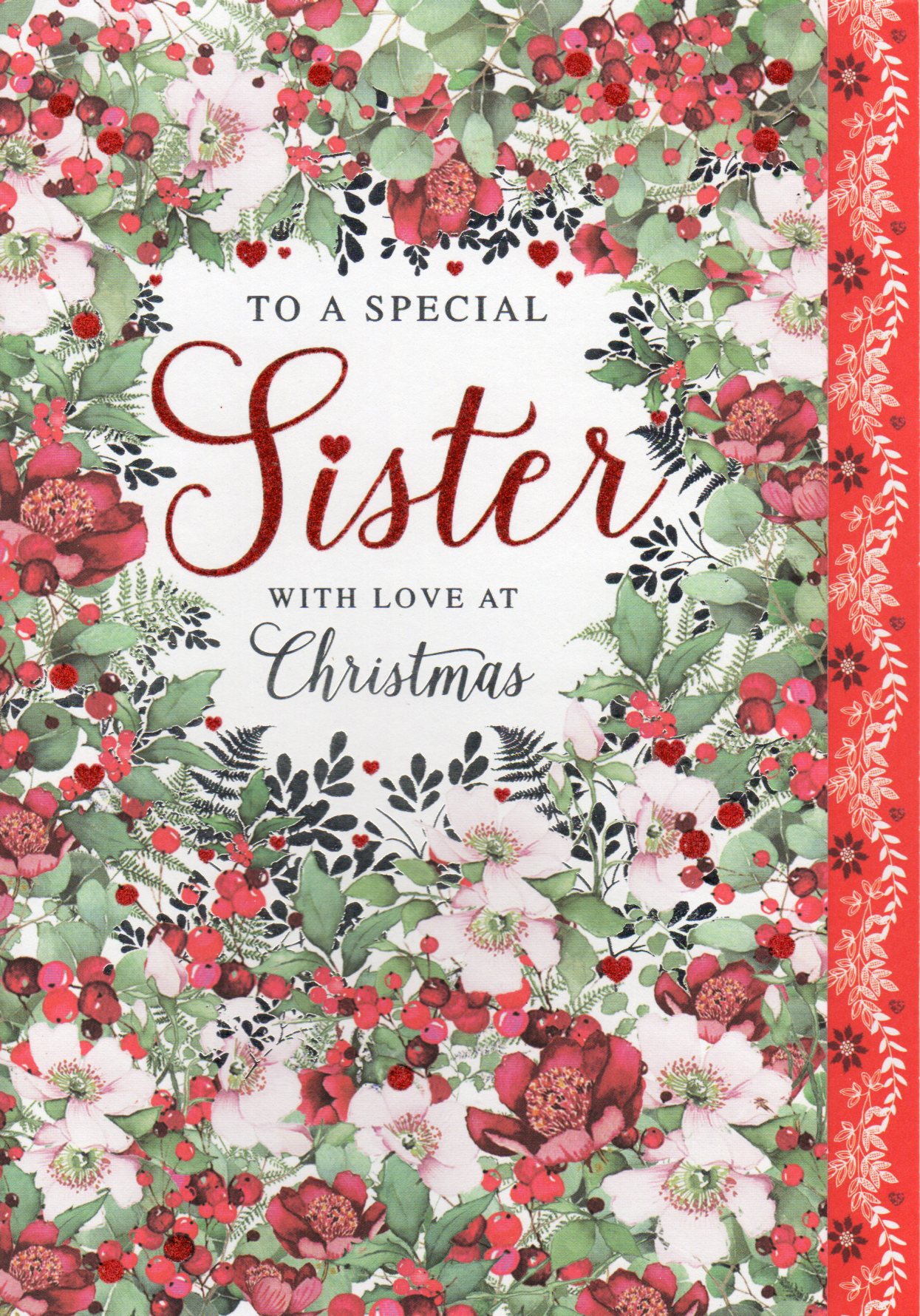 On the front the card reads: To A Special Sister With Love At Christmas
