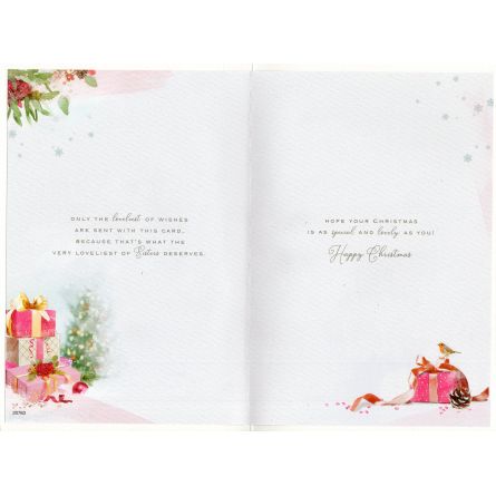 Inside reads: only the loveliest of wishes are sent with this card, because that's what the very loveliest of Sister deserves. hope your Christmas is as special and lovely as you! Happy Christmas
