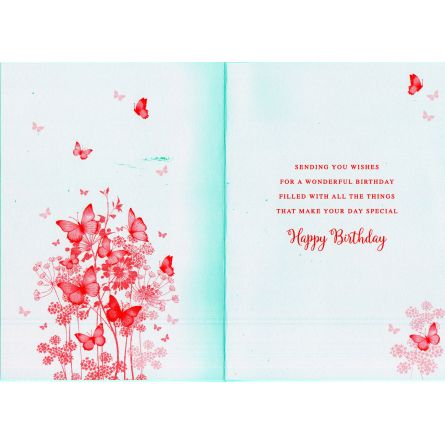 Inside reads: Sending You Wishes For A Wonderful Birthday Filled With All The Thing That Make Your Day Special Happy Birthday