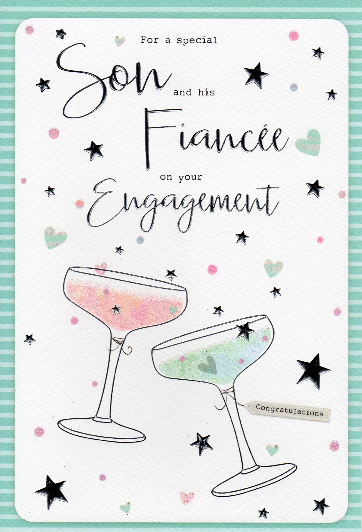 On the front the card reads: Far a Special Son and his Fiancee on your Engagement .. Congratulations...