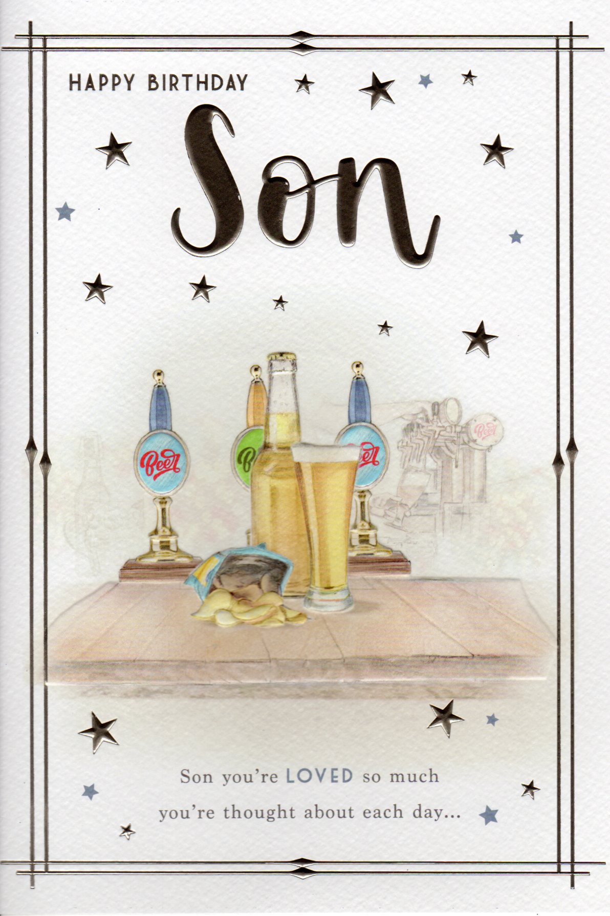 On the front the card reads: Happy Birthday Son, son you're Loved so much you're thought each day...