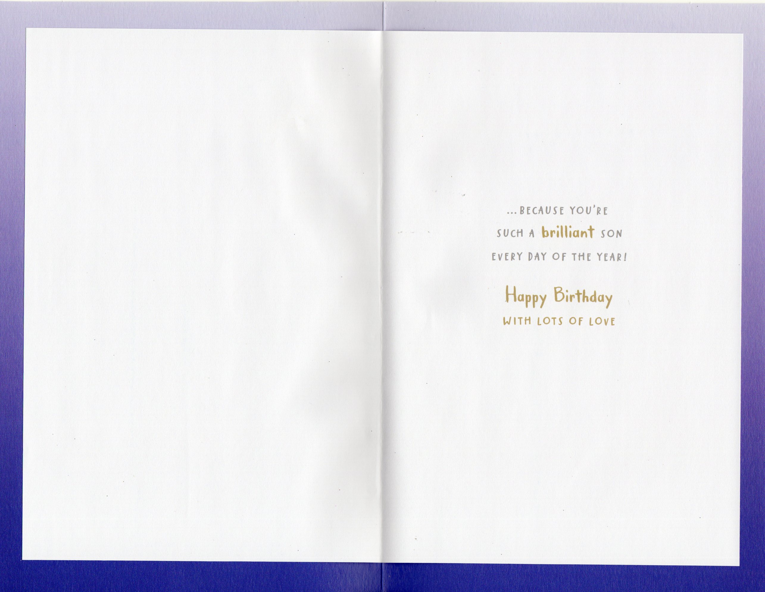 Inside reads: ...Because you're such a brilliant Son every day of the year! Happy Birthday with lots of love.