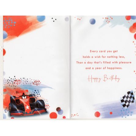 Inside reads: Every card you get holds a wish for nothing less, Than a day that's filled with pleasure and a year of happiness. Happy Birthday
