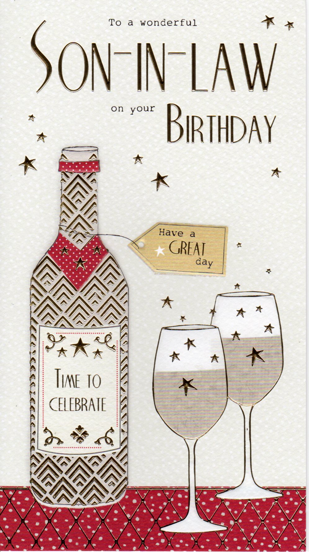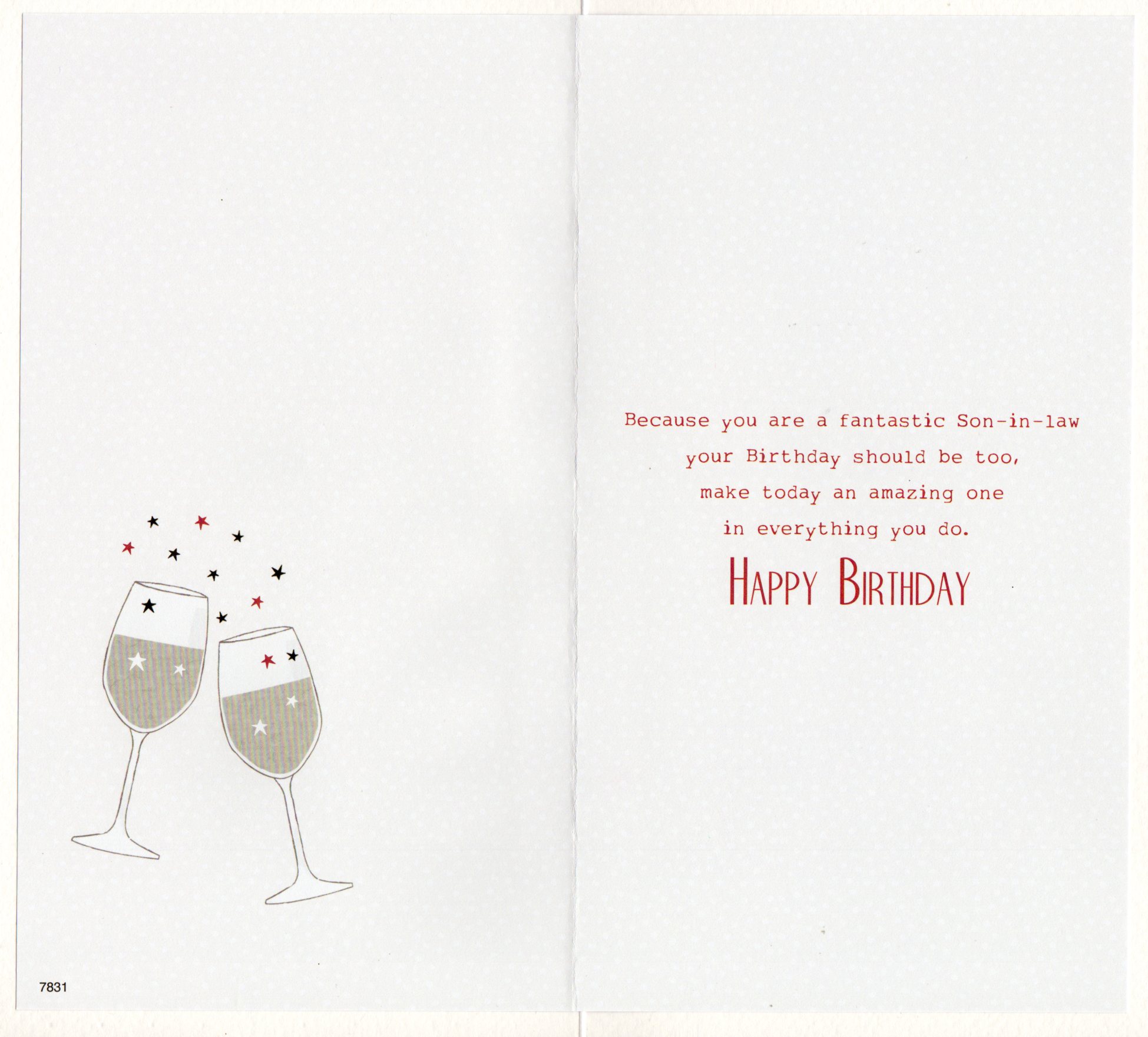 Inside reads: Because you are a fantastic Son-in-law your Birthday should be too, make today an amazing one in everything you do. Happy Birthday