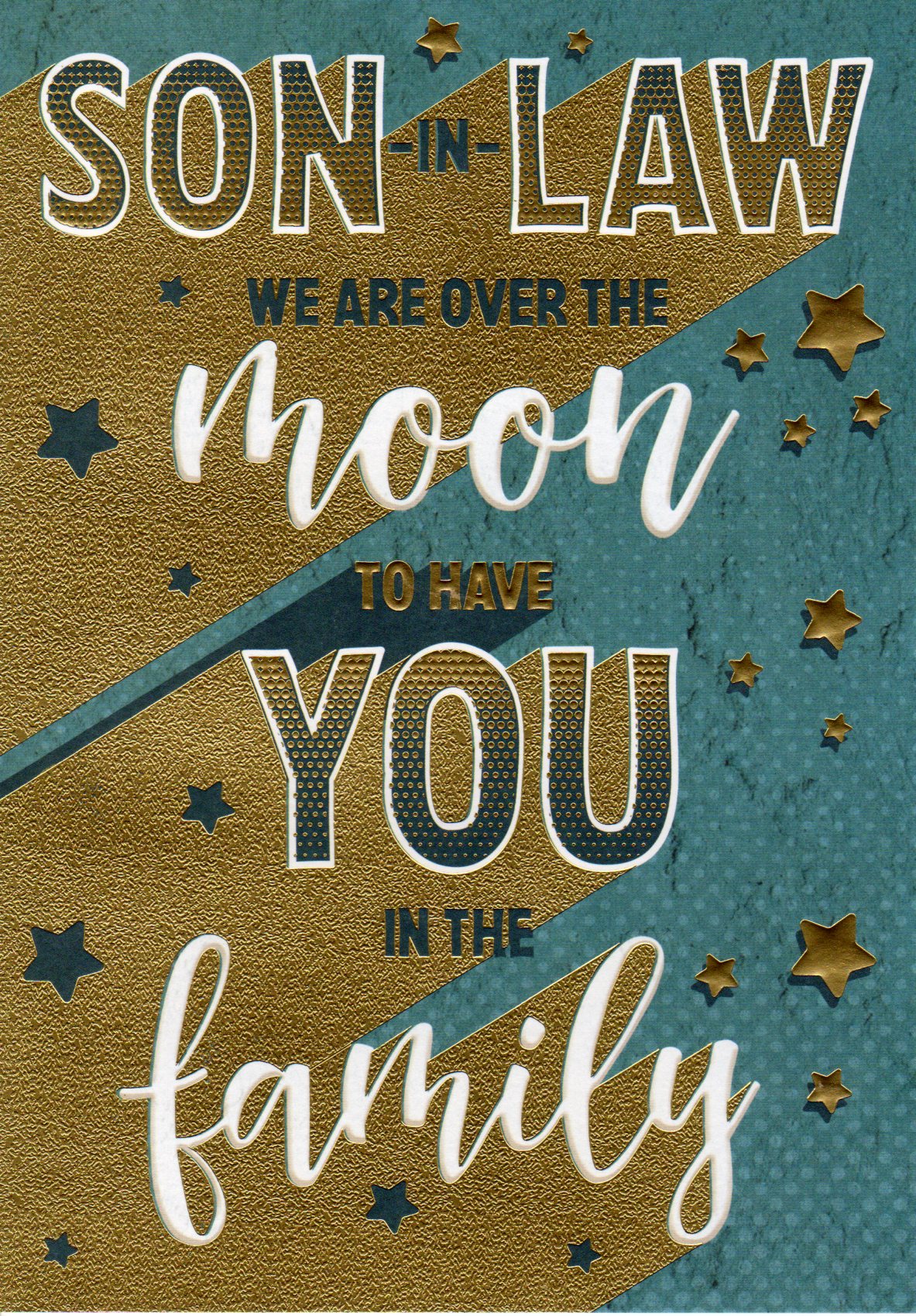 On the front the card reads: Son-in-Law.. WE ARE OVER THE MOON TO HAVE YOU IN THE Family...
