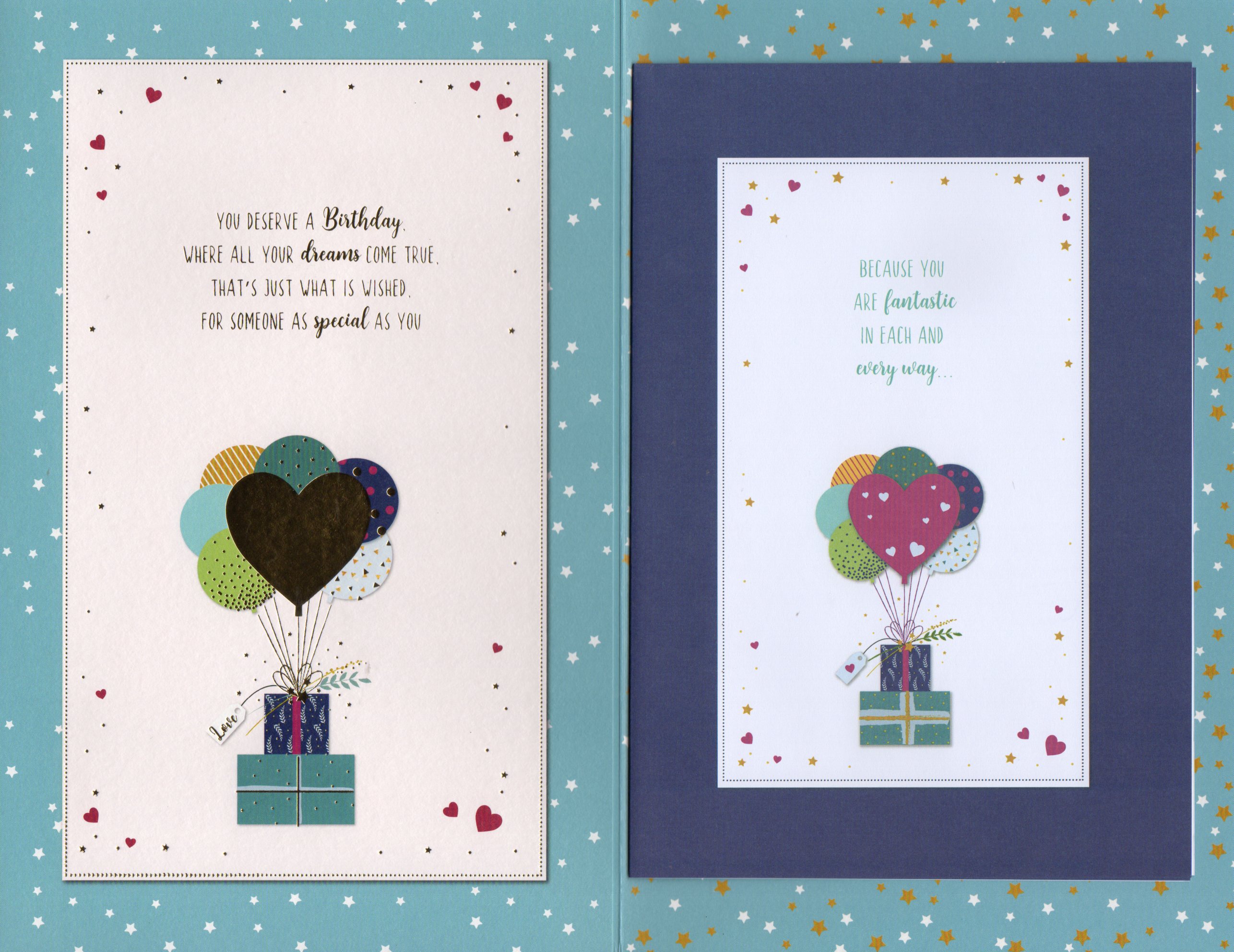Inside reads: page l You Deserve A Birthday, Where All Your Dreams Come True, That's Just What Is Wished, For Some As Special As You page ll Because You Are Fantastic In Each And Every Way... page lll ...Here's The Kind Of Birthday, That Brings An Unforgettable Day! Page lV Wishing A Very Special Person A Very Special Birthday