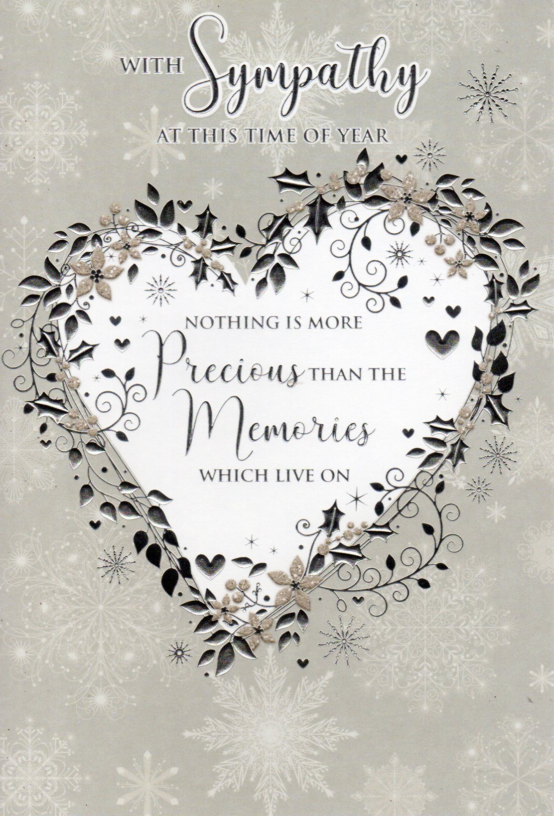 On the front the card reads: with Sympathy At this time of year, nothing is more Precious than the Memorises which live on