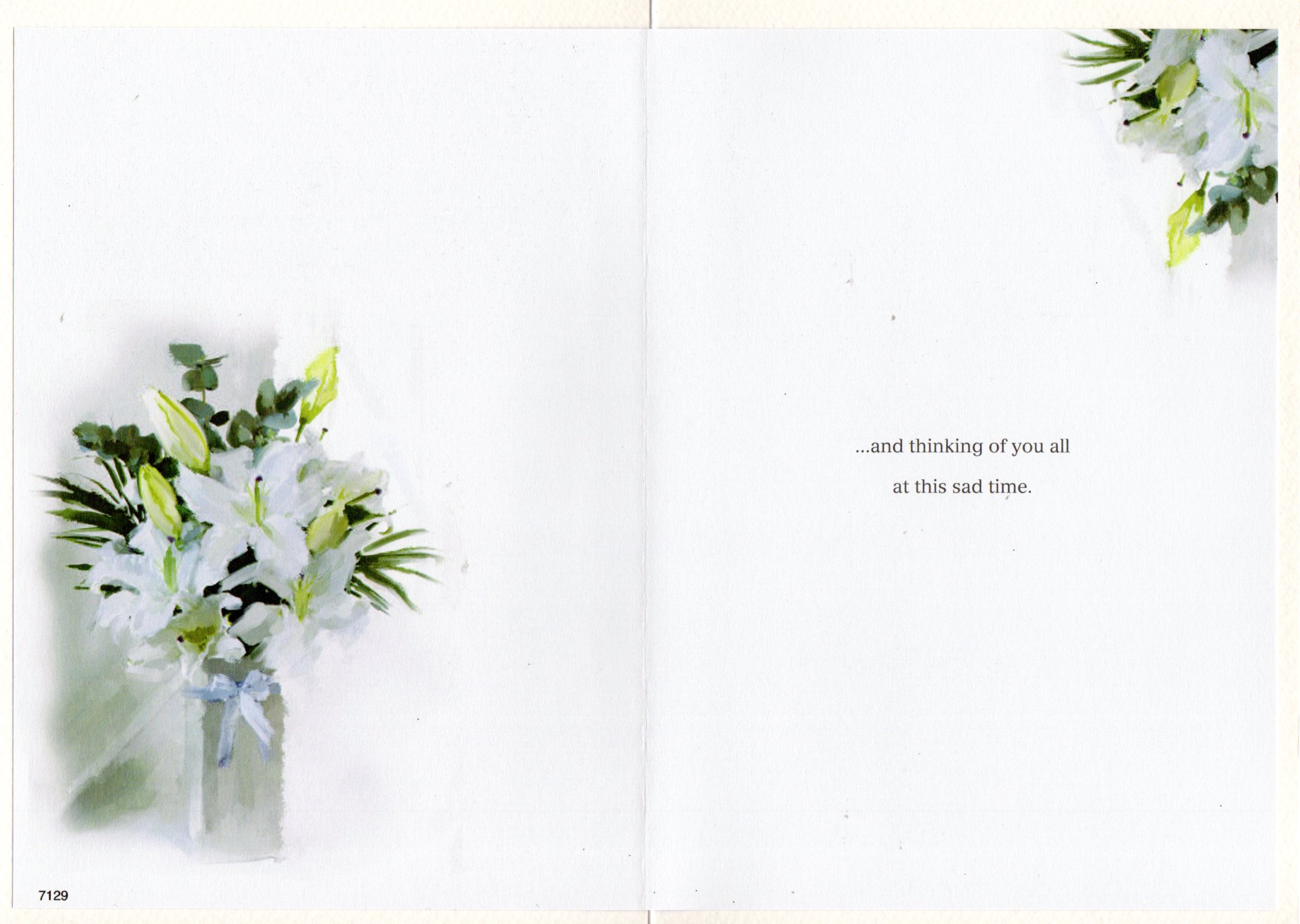 Inside reads: ...and thinking of you all at this sad time.