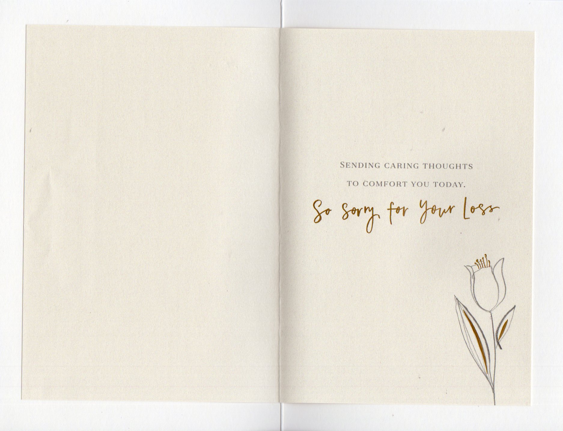 Inside reads: Sending caring thoughts to comfort you today. So Sorry For Your Loss