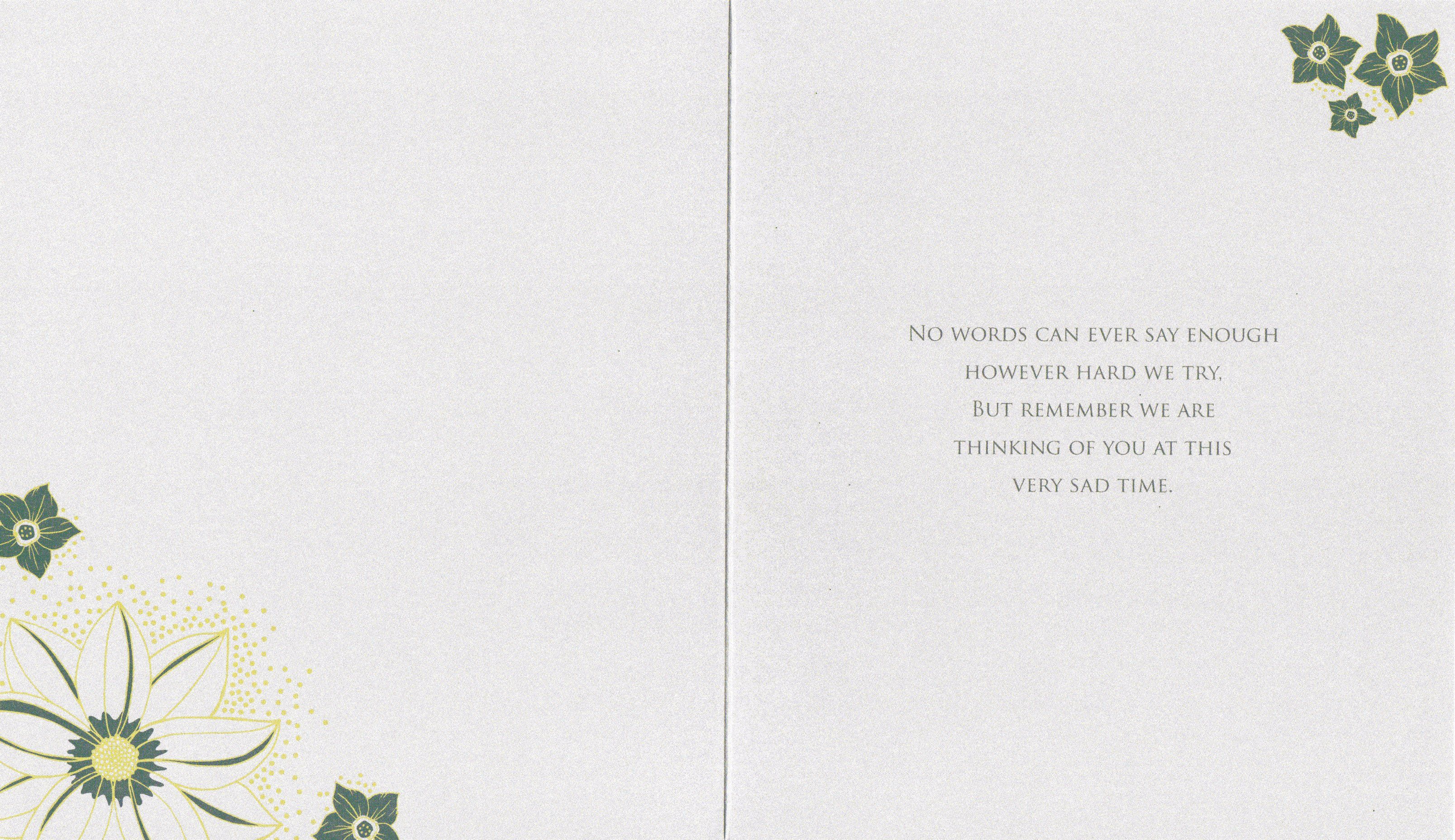 Inside reads: No words can ever say enough however hard we try, but remember we are thinking of you at this very sad time.