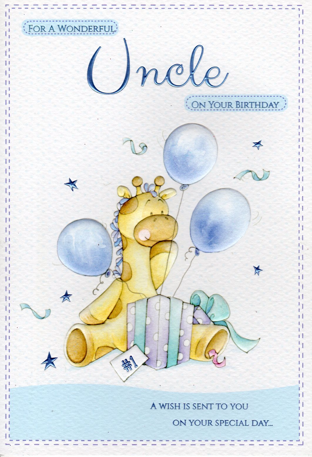 On the front the card reads: For A Wonderful Uncle On Your Birthday, a wish is sent to you on your special Day...