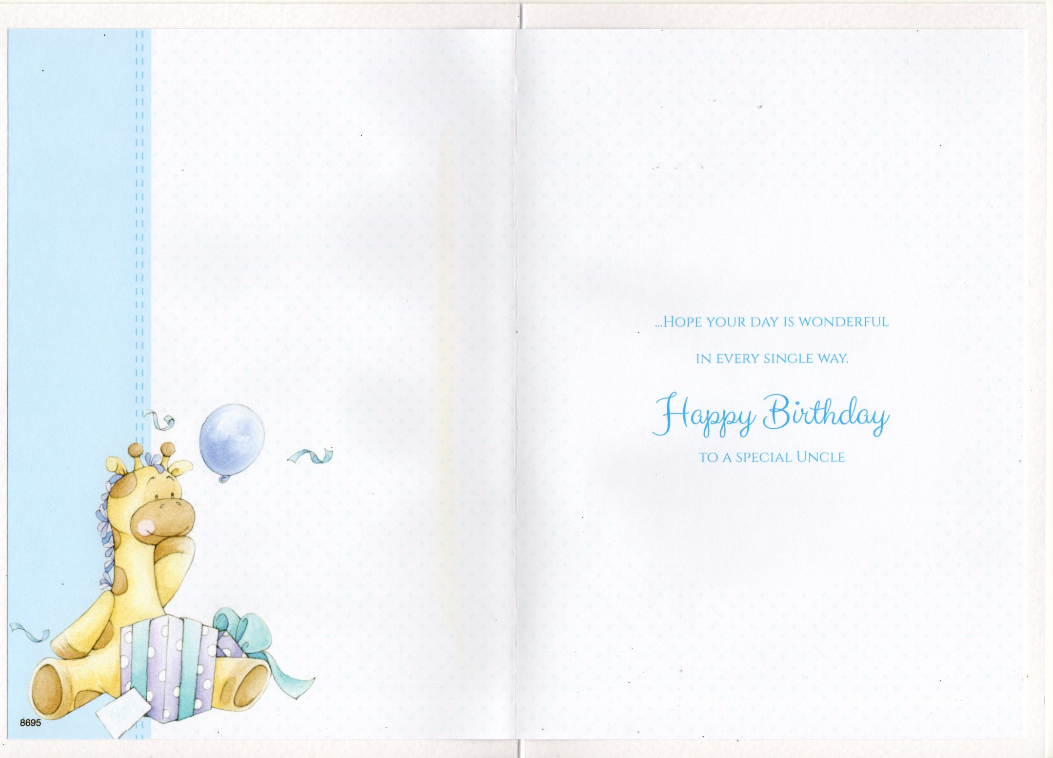 Inside reads: ...Hope your day is wonderful in every single way. Happy Birthday Ta A Special Uncle