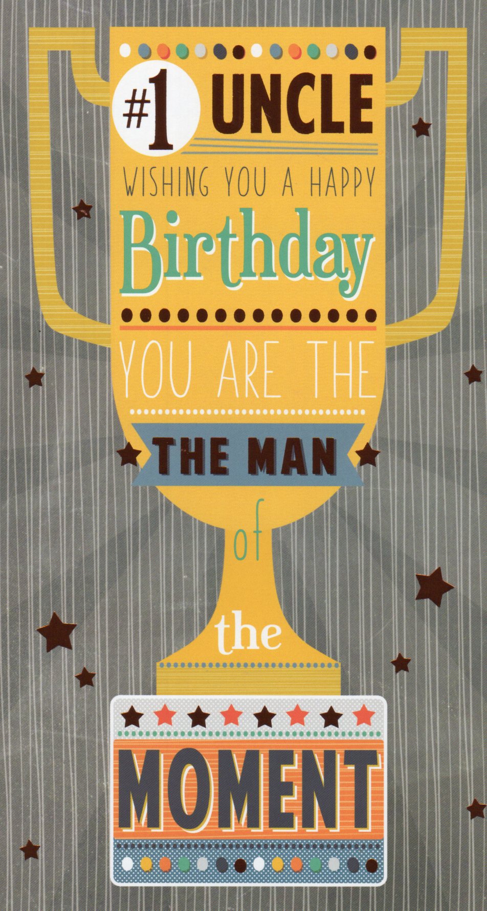 In the front the card reads: 1 Uncle Wishing You A Happy Birthday You Are The The Man Of the Moment