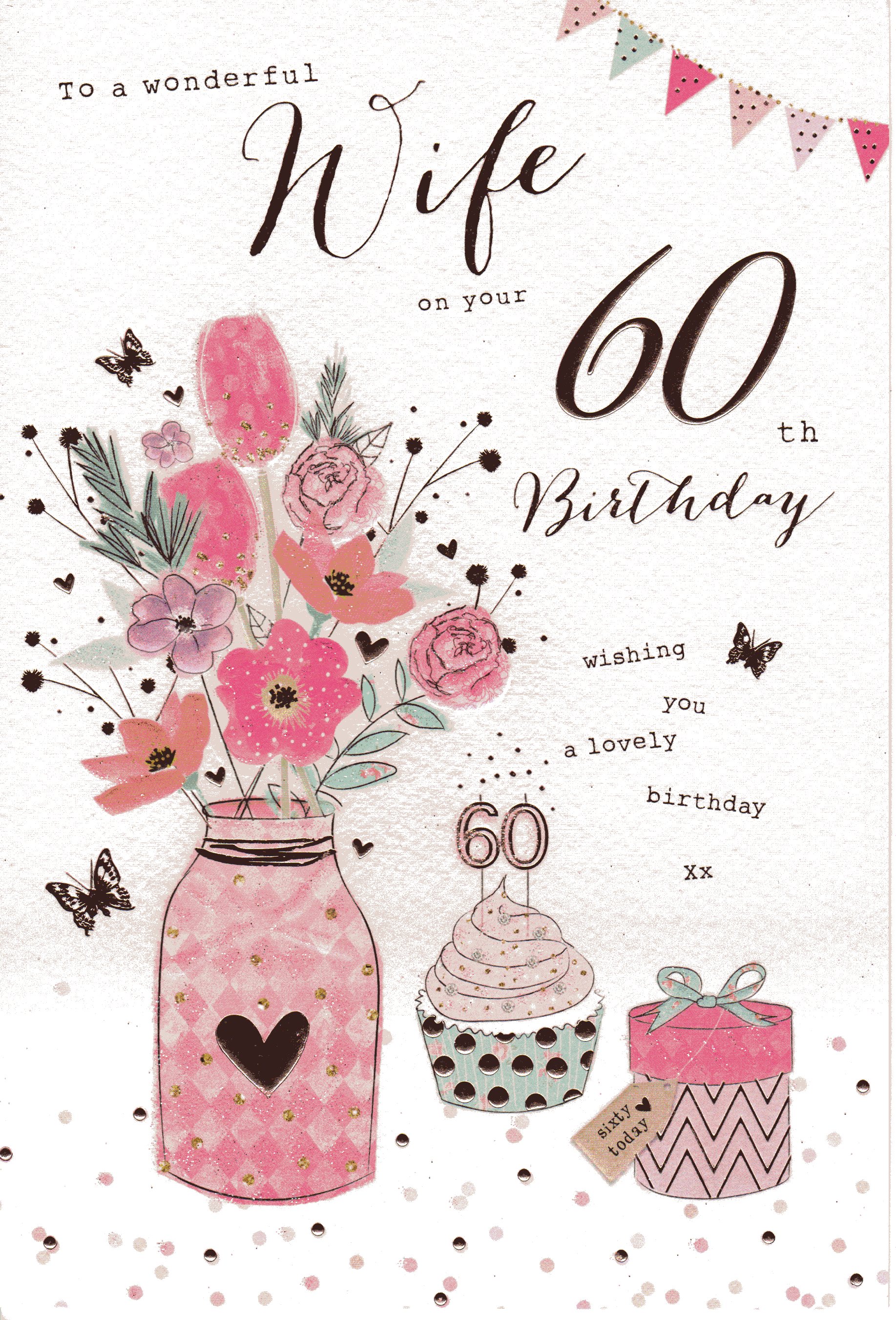On the front the card reads: To a wonderful Wife on your 60th Birthday wishing you a lovely birthday.