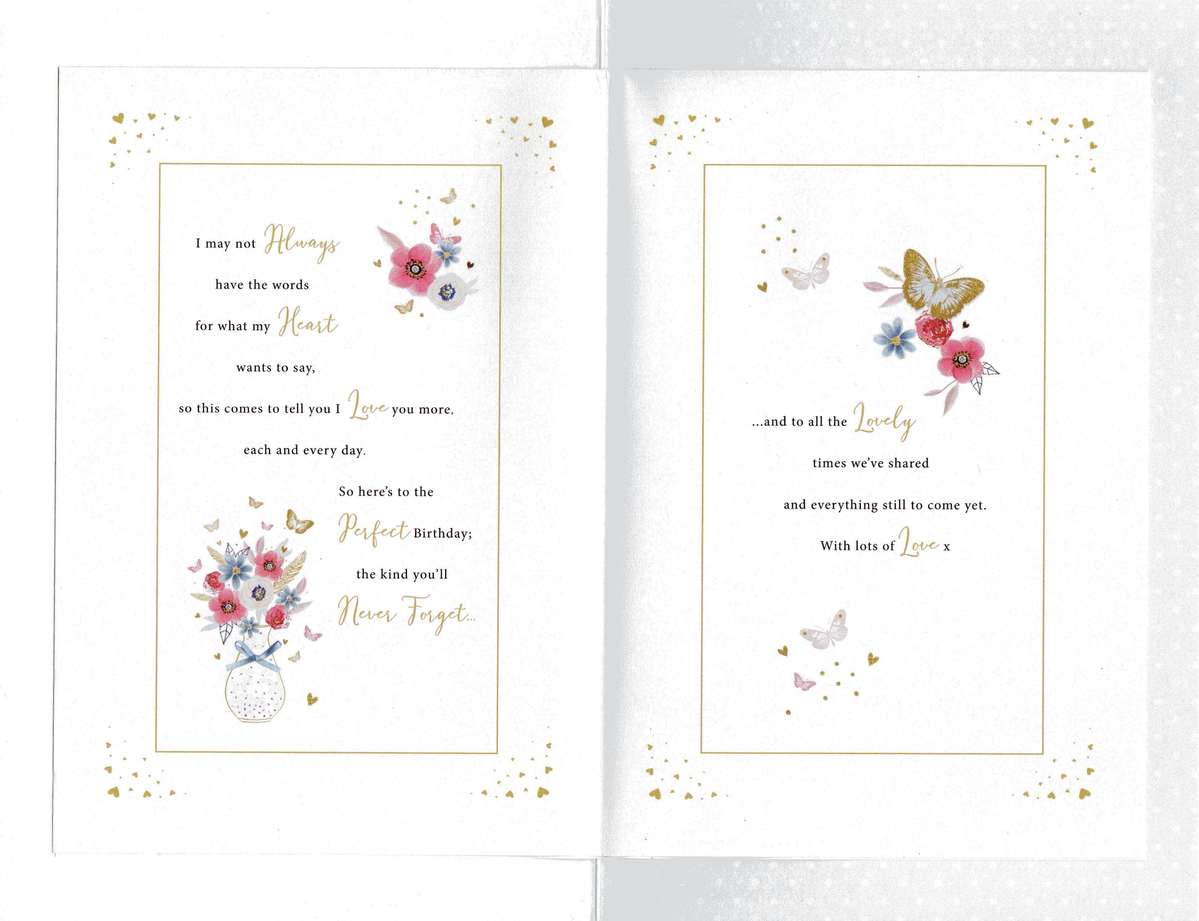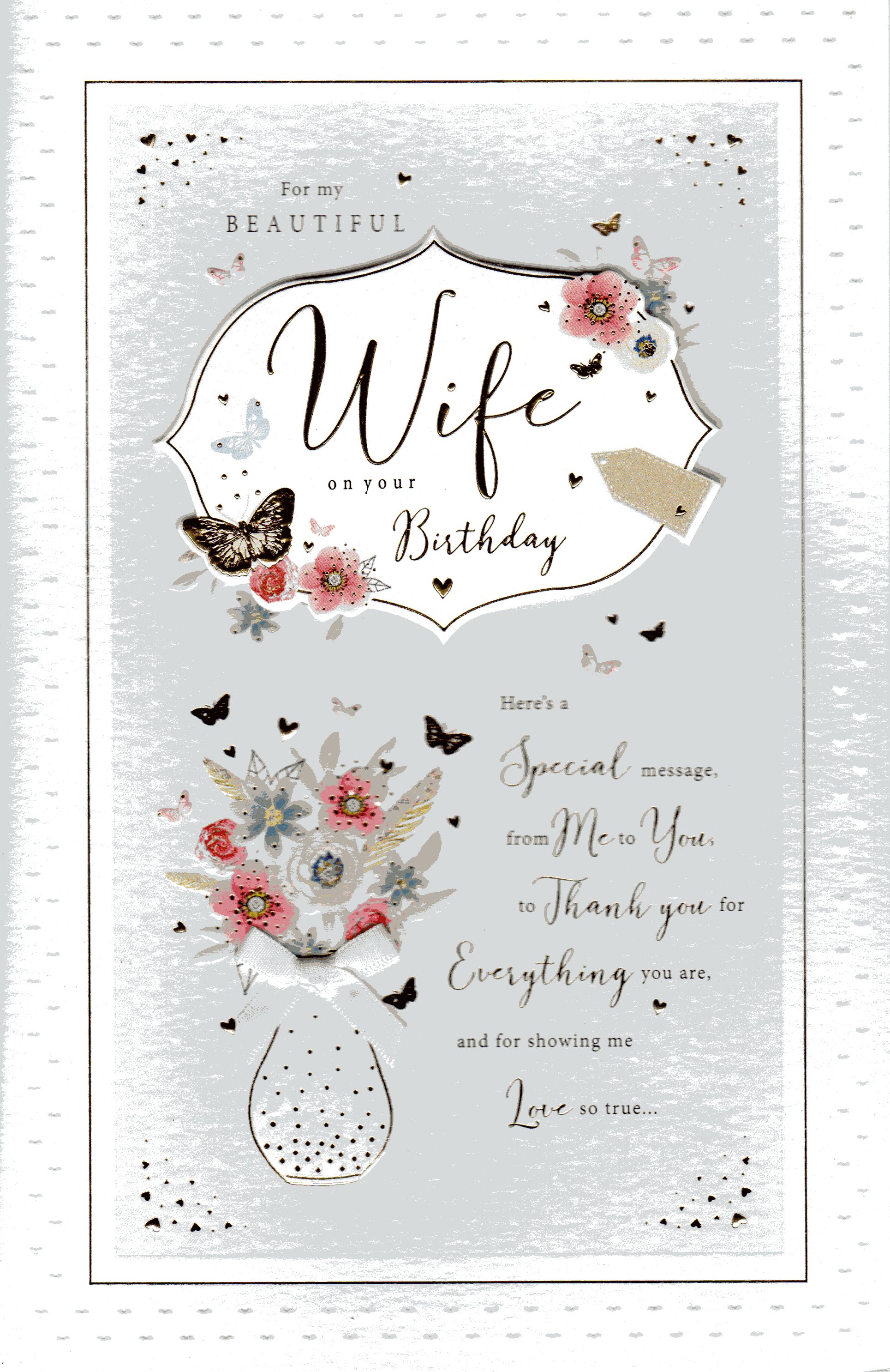 * On the front the card reads: For My Beautiful Wife On Your Birthday. Here's special message, from me to you to thank you for everything you are, and for showing me love so true...