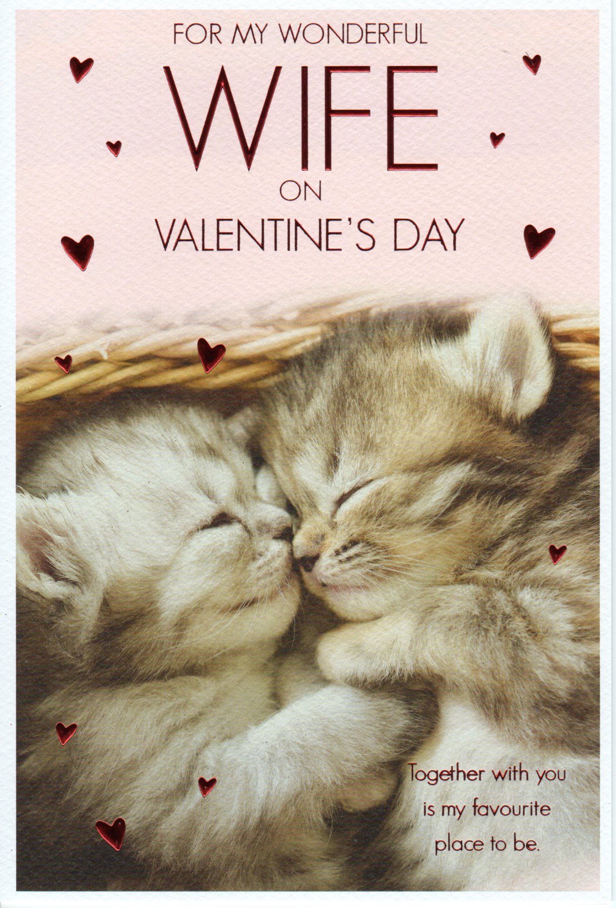 On the front the card reads: For My Wonderful Wife On Valentine's Day Together with you is my favourite place to be.