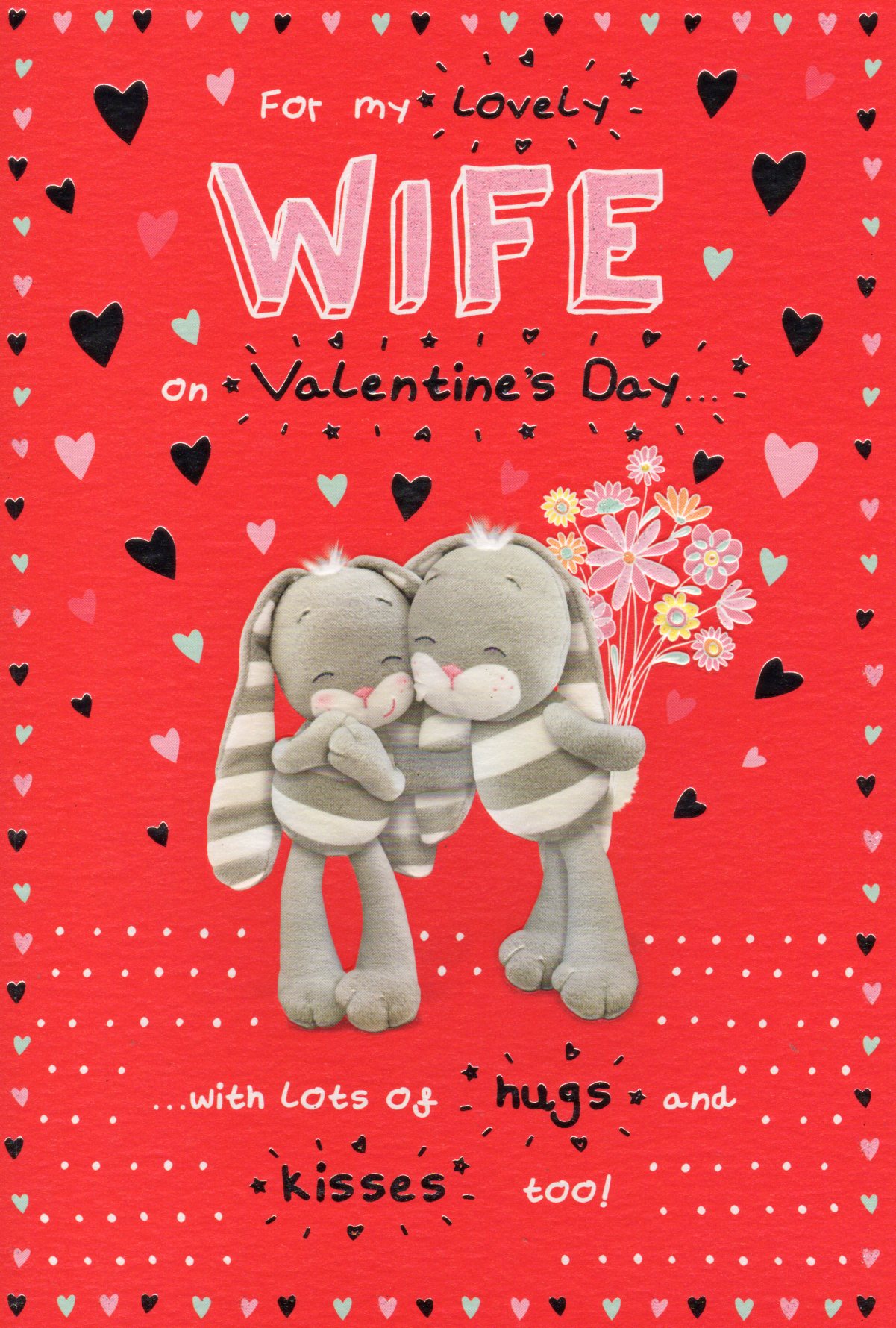On the front the card reads: For My Lovely Wife On Valentine's Day, ...with lots of hugs and kisses too!